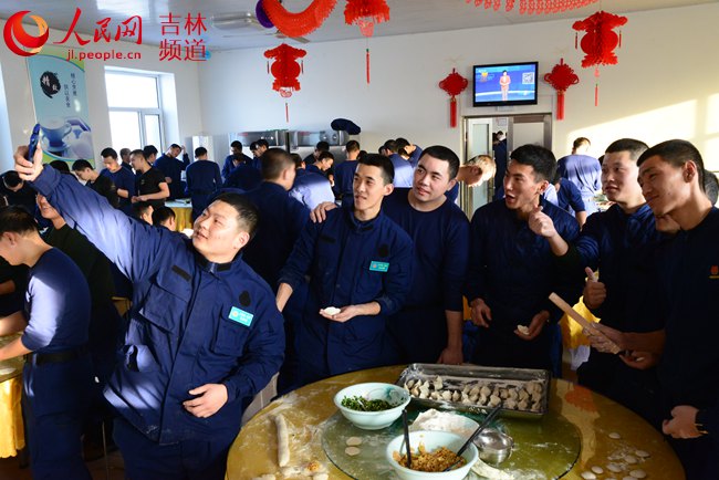 吉林省森林消防總隊新訓(xùn)大隊的新隊員包餃子慶祝小年。李洋/攝