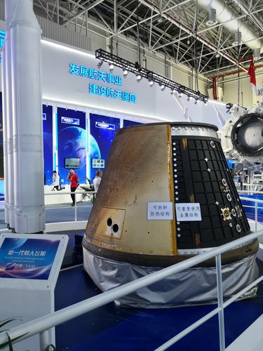 中國(guó)航天科技集團(tuán)在2018年珠海航展上展示的新一代載人飛船縮比返回艙。付毅飛攝