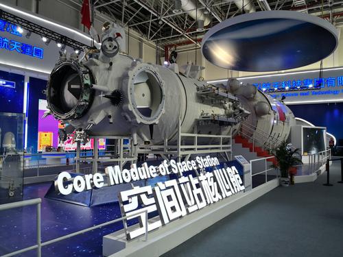 中國(guó)航天科技集團(tuán)在2018年珠海航展上展示的空間站核心艙模型。付毅飛攝