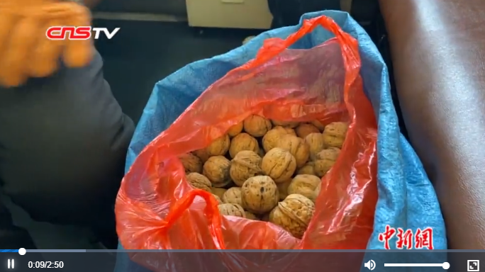 臨近春節(jié),韓現(xiàn)英的山貨銷量很好,靠著這趟列車已經(jīng)賣出去1000多斤核桃。