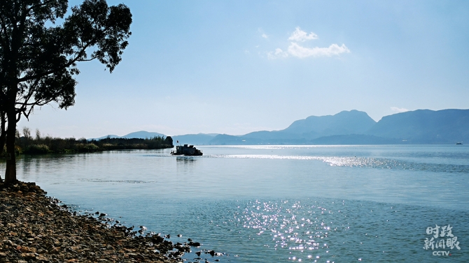 △日光下的滇池,波光粼粼。(總臺央視記者張曉鵬拍攝)