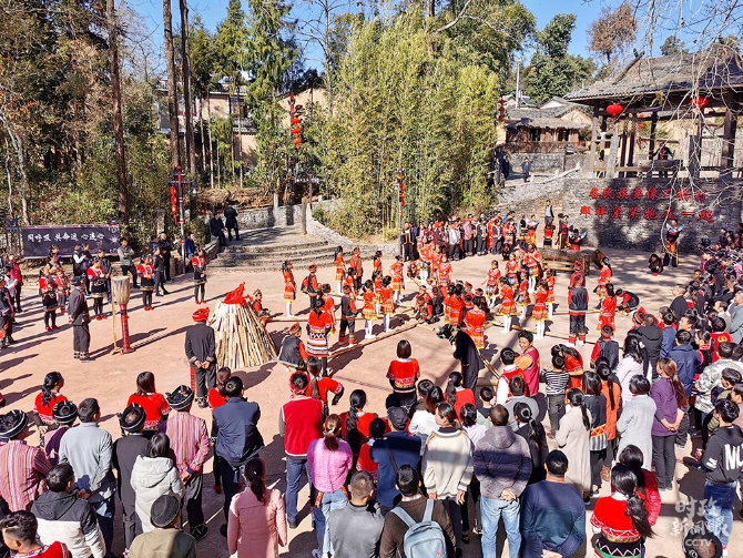 △司莫拉佤族村村民跳起歡快的佤族舞蹈。(總臺央視記者韓銳拍攝)