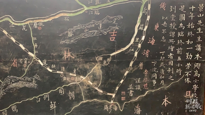 △和順圖書館珍藏了一塊珍貴的黑板板書。當?shù)亟逃依罹吧皆谥v授國恥一課時,義憤填膺,當堂病倒。這堂課成了景山先生的“最后一課”。(總臺央視記者米鶴拍攝)