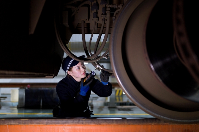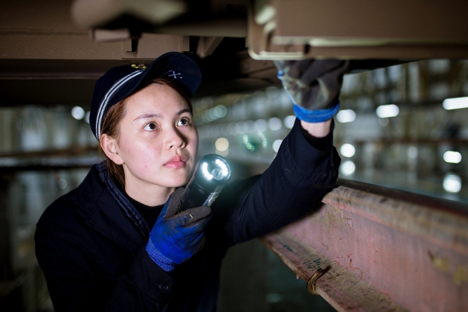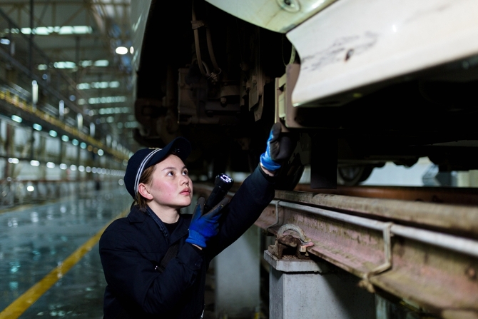 她們的作業(yè)分為有電作業(yè)和無電作業(yè)兩種狀態(tài)。有電作業(yè)主要是對高鐵車載設(shè)備進(jìn)行試驗(yàn),檢查機(jī)柜內(nèi)設(shè)備顯示燈是否正常,機(jī)柜是否有異物、異味等;無電作業(yè)主要是對高鐵動車組車底的速度傳感器、應(yīng)答器、軌道信息接收天線線圈進(jìn)行防松脫檢查等。