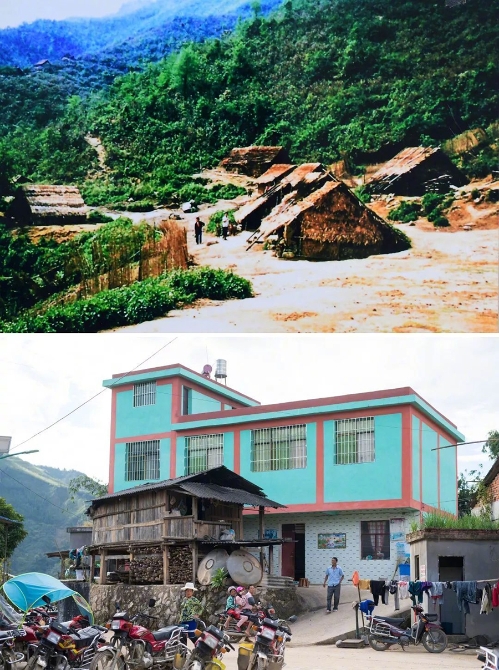 從這兩張照片的對比可以看到苦聰人居住條件的改變。
