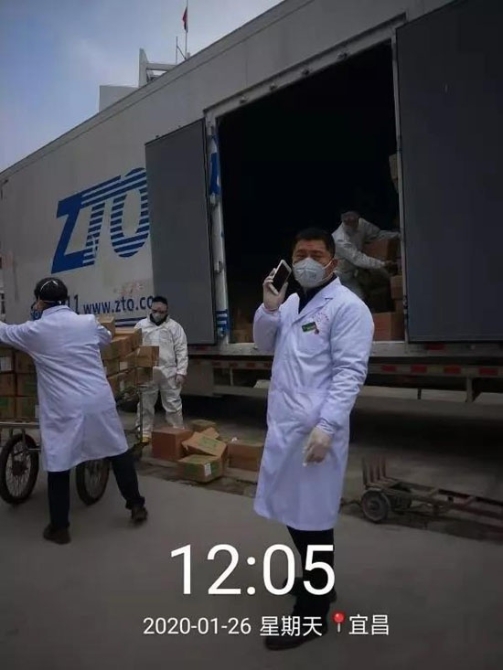 1月26日,由中通快遞連夜從江蘇江陰發(fā)往湖北省宜昌市的救援物資已經(jīng)到達(dá)到達(dá)湖北宜昌第三人民醫(yī)院。