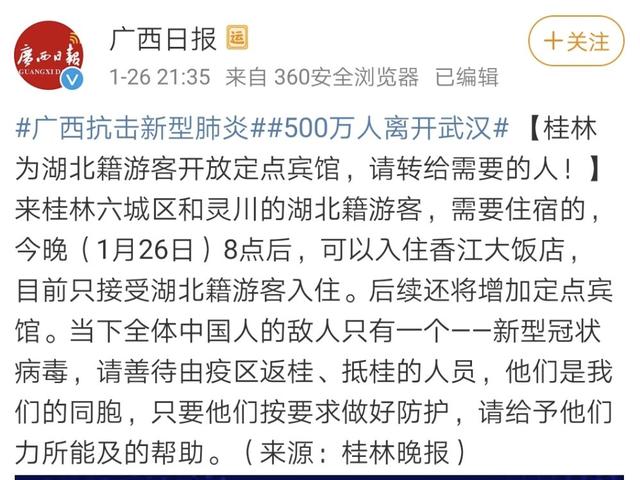 記者注意到,廣西、云南、貴州等多地均發(fā)出相關(guān)通知,妥善處理滯留的湖北旅客。