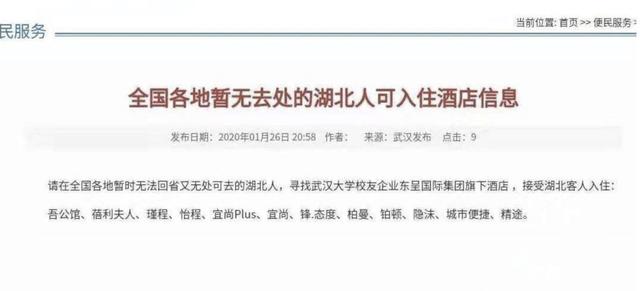 到西安的武漢人,可以入駐指定酒店→
