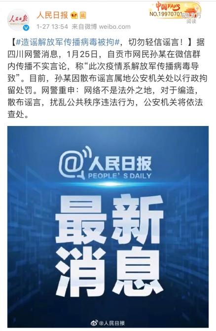 經(jīng)德江縣公安機(jī)關(guān)查實(shí),小型汽車號(hào)牌無(wú)浙BL0535車輛。該信息為不實(shí)信息,請(qǐng)廣大市民不信謠、不傳謠。解放軍傳播病毒被拘?造謠!人民日?qǐng)?bào)已經(jīng)辟謠了!