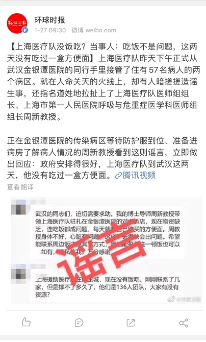 上海醫(yī)療隊(duì)沒(méi)飯吃?當(dāng)事人已經(jīng)證實(shí),吃飯不是問(wèn)題!