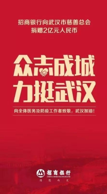 共渡難關(guān)!招商銀行捐款2億助力武漢疫情防控
