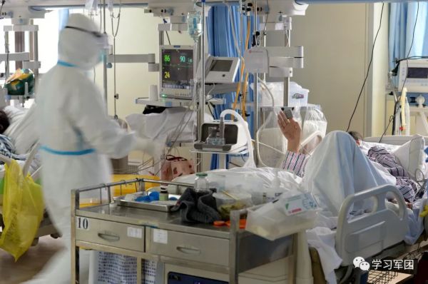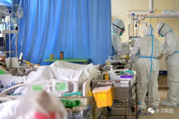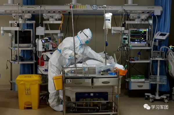 1月27日上午,海軍軍醫(yī)大學(xué)醫(yī)療隊(duì)醫(yī)護(hù)人員在漢口醫(yī)院重癥監(jiān)護(hù)室對新型冠狀病毒感染的肺炎患者進(jìn)行救治。醫(yī)護(hù)人員加強(qiáng)巡視,觀察輸液滴數(shù)。解放軍報(bào) 記者范顯海/攝