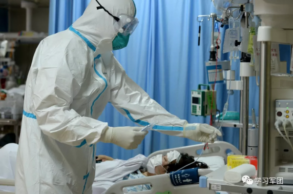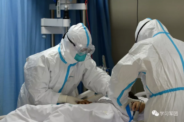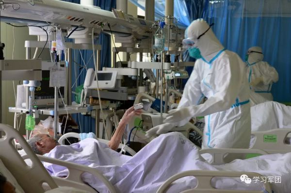 1月27日上午,海軍軍醫(yī)大學(xué)醫(yī)療隊(duì)醫(yī)護(hù)人員在漢口醫(yī)院重癥監(jiān)護(hù)室對新型冠狀病毒感染的肺炎患者進(jìn)行救治。醫(yī)護(hù)人員對患者進(jìn)行輸液護(hù)理。解放軍報(bào) 記者范顯海/攝