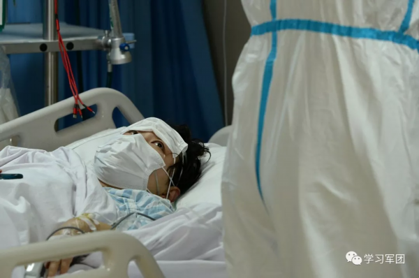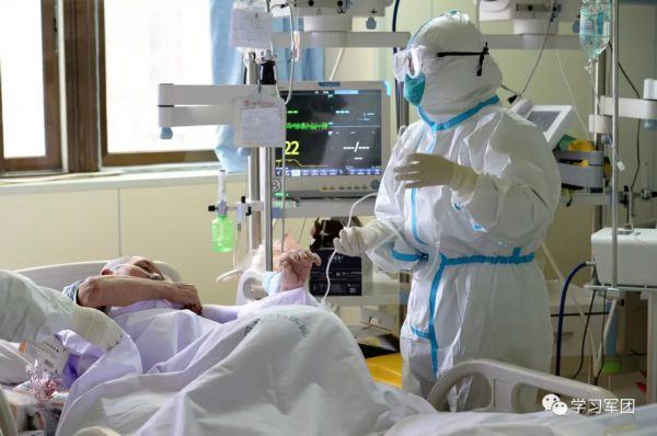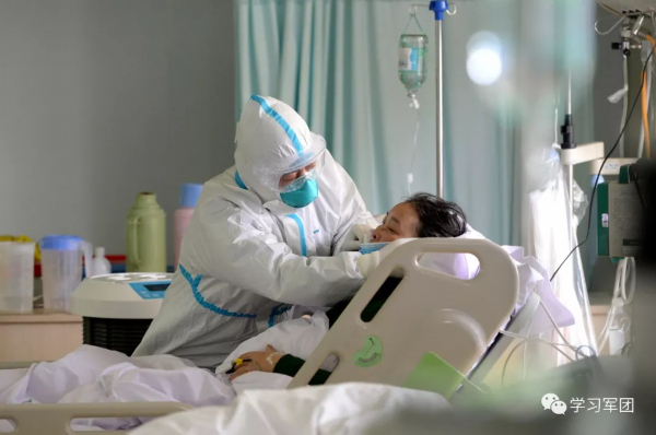 1月27日上午,海軍軍醫(yī)大學(xué)醫(yī)療隊(duì)醫(yī)護(hù)人員在漢口醫(yī)院重癥監(jiān)護(hù)室對新型冠狀病毒感染的肺炎患者進(jìn)行救治。醫(yī)護(hù)人員迅速回應(yīng)患者呼喚。解放軍報(bào) 記者范顯海/攝