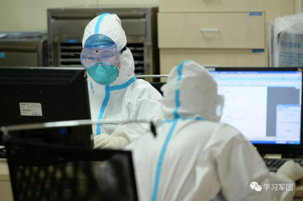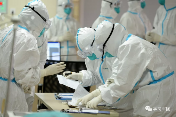 1月27日上午,海軍軍醫(yī)大學(xué)醫(yī)療隊(duì)醫(yī)護(hù)人員在漢口醫(yī)院重癥監(jiān)護(hù)室對新型冠狀病毒感染的肺炎患者進(jìn)行救治。醫(yī)護(hù)人員認(rèn)真記錄醫(yī)療文書,執(zhí)行醫(yī)囑。解放軍報(bào) 記者范顯海/攝