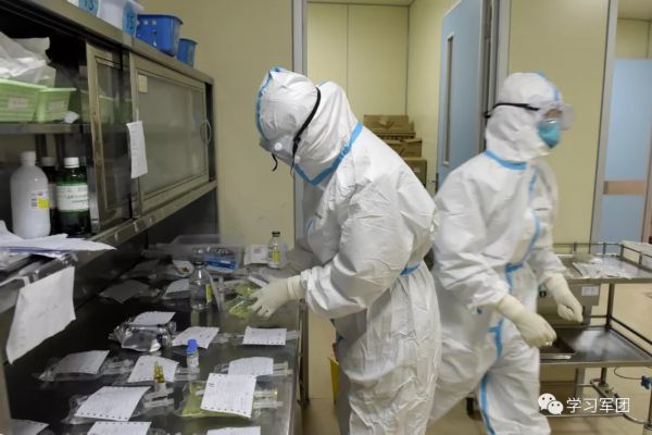 1月27日上午,海軍軍醫(yī)大學(xué)醫(yī)療隊(duì)醫(yī)護(hù)人員在漢口醫(yī)院重癥監(jiān)護(hù)室對新型冠狀病毒感染的肺炎患者進(jìn)行救治。醫(yī)護(hù)人員查看檢查結(jié)果,評估患者病情。解放軍報(bào) 記者范顯海/攝