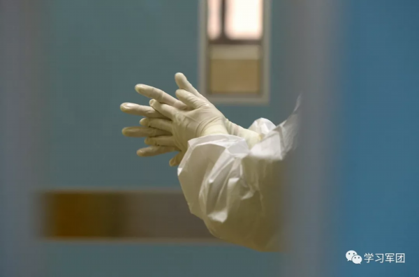 1月27日上午,海軍軍醫(yī)大學(xué)醫(yī)療隊(duì)醫(yī)護(hù)人員在漢口醫(yī)院重癥監(jiān)護(hù)室對新型冠狀病毒感染的肺炎患者進(jìn)行救治。穿好防護(hù)服的醫(yī)護(hù)人員在進(jìn)入重癥監(jiān)護(hù)室前洗手消毒。解放軍報(bào) 記者范顯海/攝
