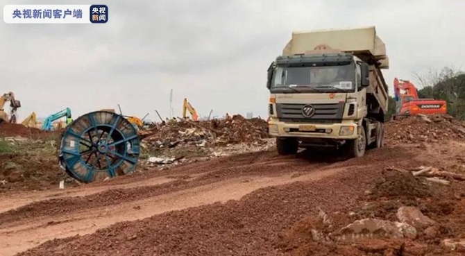 △1月26日,武漢火神山醫(yī)院建設(shè)現(xiàn)場(供圖:總臺央視記者 張鵬軍)
