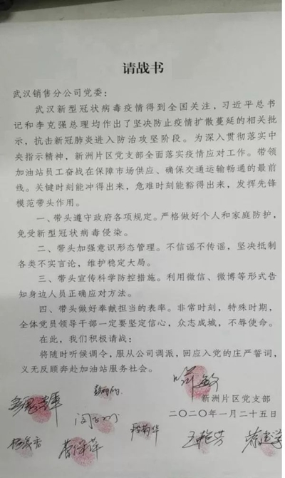與武漢人民、湖北人民、全國(guó)人民一起并肩作戰(zhàn)。