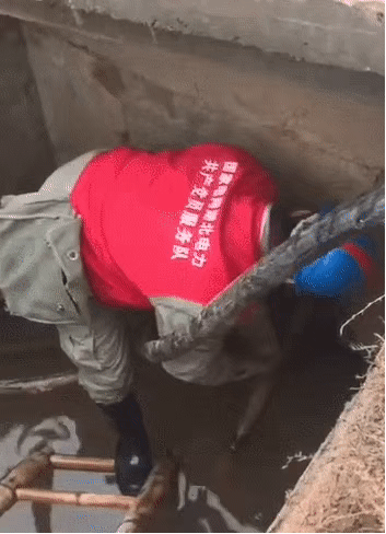 在雷神山醫(yī)院電纜敷設(shè)現(xiàn)場(chǎng),供電員工冒著嚴(yán)寒鉆進(jìn)滿是積水的電纜溝;