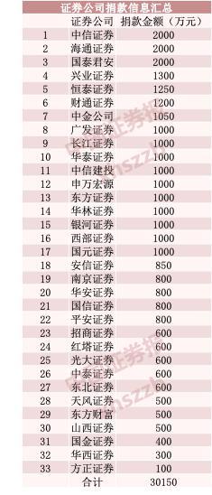 據(jù)中證君不完全統(tǒng)計(jì),截至1月29日11時(shí),已有33家證券公司(不包括股東單位)先后捐贈(zèng)超過(guò)3億元資金及緊缺物資。
