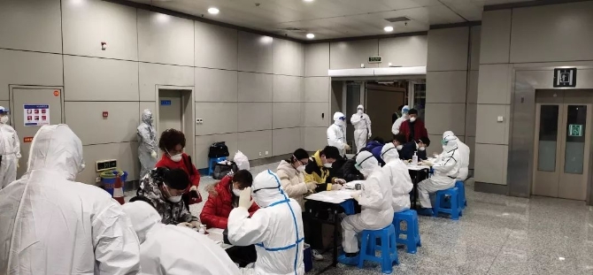 醫(yī)學(xué)綜合實(shí)驗(yàn)室工作人員王宇平連夜對(duì)旅客咽拭子樣本進(jìn)行新型冠狀病毒核酸檢測(cè)。