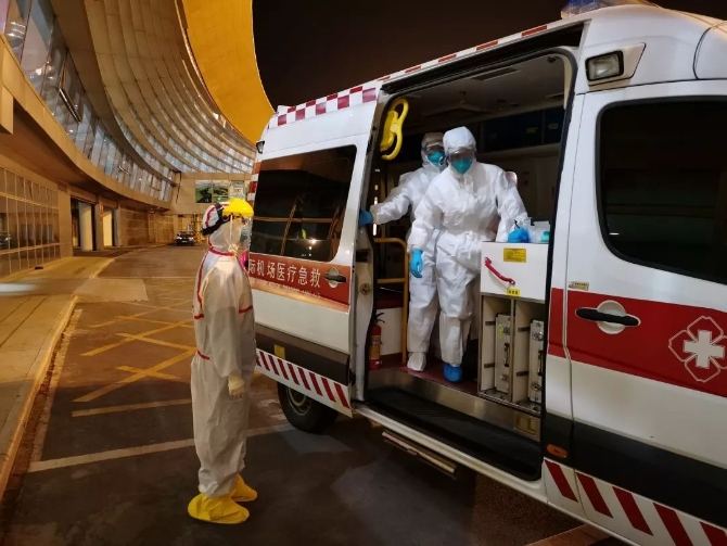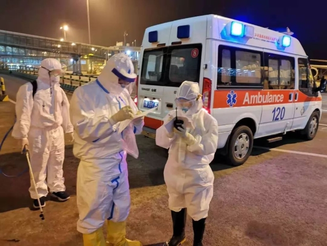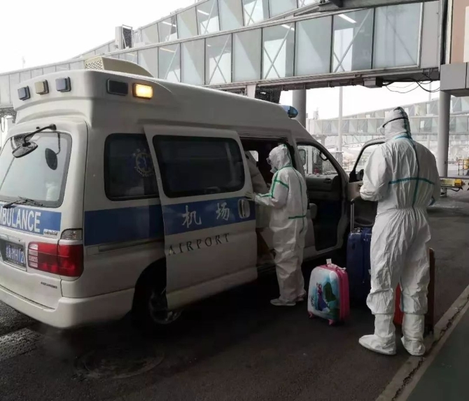 江北機(jī)場(chǎng)海關(guān)關(guān)員袁丁將疑似病例移交機(jī)場(chǎng)醫(yī)救中心,并轉(zhuǎn)運(yùn)至指定醫(yī)院。