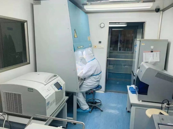 技術(shù)人員趙志亮連夜檢測(cè)口岸送檢的疑似新型冠狀病毒感染的肺炎病例咽拭子樣本。