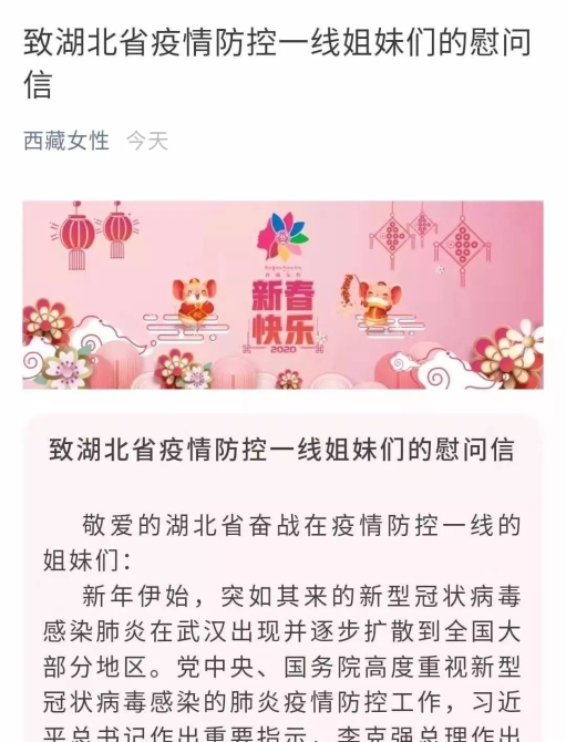 向荊楚姐妹發(fā)來慰問信