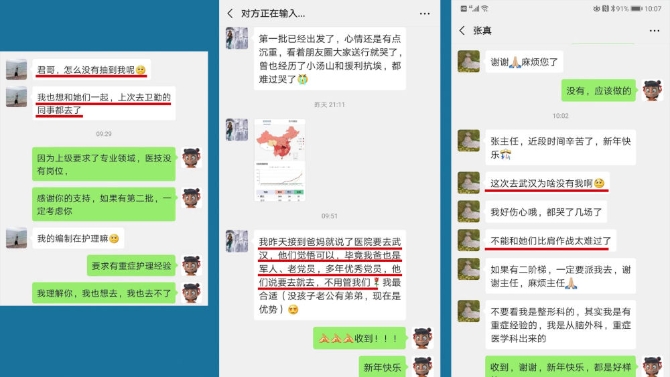 “和爸媽說了要去武漢,他們覺悟可以,畢竟我爸也是軍人、老黨員?!?/p>