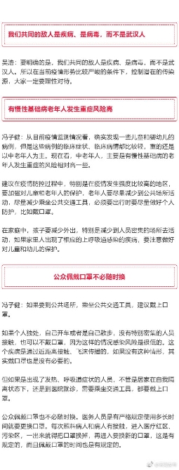 昆明信息港訊 機器人小明 【普通人戴口罩不必一次一換!只有這些情況可以不用戴…】國家衛(wèi)生健康委1月29日下午召開新聞發(fā)布會,邀請中國疾控中心副主任馮子健、北京市方莊社區(qū)衛(wèi)生服務(wù)中心主任吳浩就新型冠狀病毒感染的肺炎疫情預(yù)防公眾指導建議有關(guān)情況回答記者提問。@人民網(wǎng)