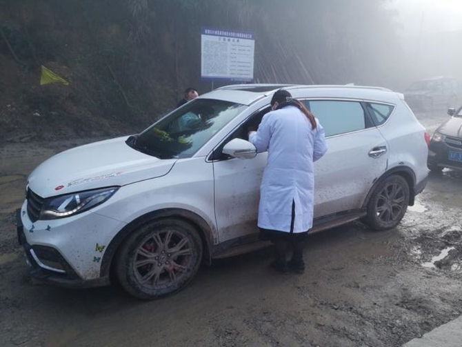 201省道四川興文縣與云南威信縣交界處,檢查站工作人員正在檢查過往車輛。四川省林草局供圖。