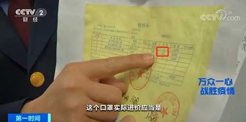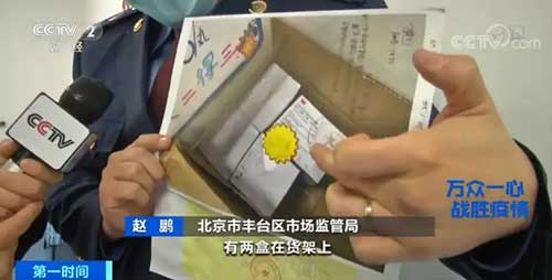 北京市豐臺區(qū)市場監(jiān)管局 趙鵬:當時現(xiàn)場箱子里有四盒口罩,有兩盒在貨架上,它的標價是850元一盒,這個口罩實際單價是20元一只。