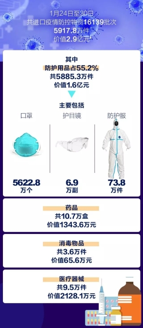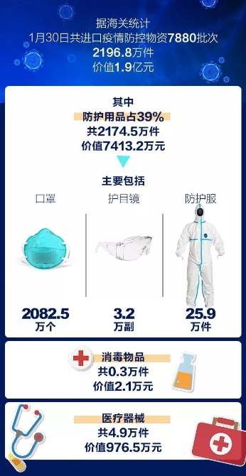 1月27日,按照特事特辦原則,海關(guān)總署進(jìn)一步制發(fā)通知明確進(jìn)口疫情防控物資快速通關(guān)措施,對(duì)專門用于疫情防控治療的進(jìn)口藥品、醫(yī)療器械等,包括通過(guò)各類運(yùn)輸方式進(jìn)口、旅客攜帶和通過(guò)郵寄快遞方式進(jìn)境的疫情防控物資,做到即到即提,確保通關(guān)“零延時(shí)”,以最短的時(shí)間投入疫情防控;要求全國(guó)所有隸屬海關(guān)設(shè)立咨詢熱線,并在主要媒體公布,專人負(fù)責(zé)值守,第一時(shí)間響應(yīng)企業(yè)需求,解答問(wèn)題,指導(dǎo)辦理通關(guān)業(yè)務(wù);啟動(dòng)相關(guān)物資進(jìn)口信息收集匯總機(jī)制,加強(qiáng)進(jìn)口疫情防控物資數(shù)據(jù)統(tǒng)計(jì),為做好疫情防控物資供應(yīng)保障提供決策參考。同時(shí),積極做好供港澳物資的通關(guān)服務(wù)保障工作。