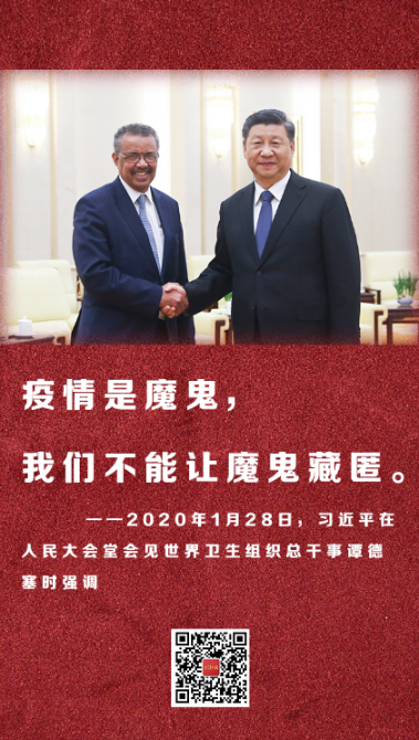 ——2020年1月28日,習(xí)近平在人民大會堂會見世界衛(wèi)生組織總干事譚德塞時強調(diào)