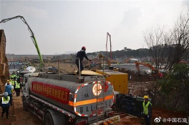 上午10點(diǎn),兩輛載滿16噸柴油的中國石油油罐車,駛?cè)牖鹕裆结t(yī)院工地現(xiàn)場,為緊張施工的各類車輛、發(fā)電機(jī)、工程器械快速加注油品,保障施工過程緊湊高效持續(xù)。