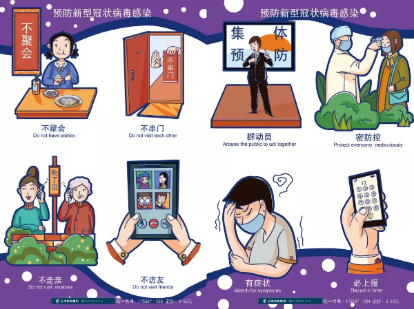 如何做才能避免感染,保護(hù)好自己和家人是大家最為關(guān)心的問題。該套掛圖將如何預(yù)防的關(guān)鍵知識凝練成為簡短文字,朗朗上口,配有卡通圖片,讓人印象深刻。掛圖形式活潑生動,既宣傳了關(guān)鍵防護(hù)知識,又安撫群眾情緒,在凝重的氣氛中,感到放松,冷靜面對來勢洶洶的肺炎。