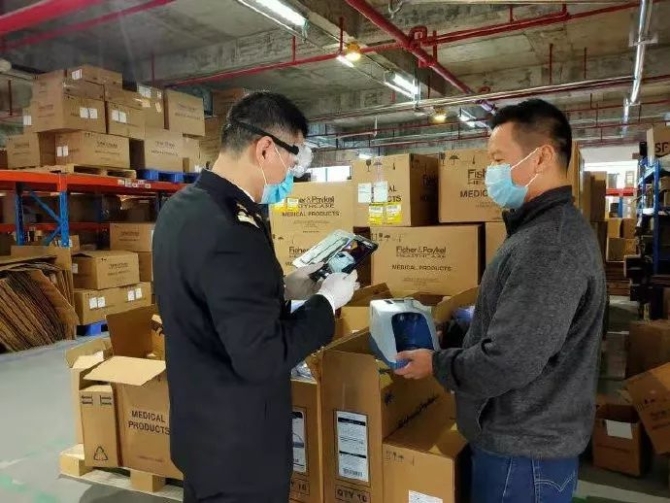 2月1日,看到這批貨物是將要運往武漢市雷神山、火神山以及金銀潭醫(yī)院、市中心醫(yī)院等醫(yī)療機(jī)構(gòu)的物資,黃埔海關(guān)所屬蘿崗海關(guān)主動聯(lián)系企業(yè),優(yōu)先為費雪派克醫(yī)療保?。◤V州)有限公司辦理應(yīng)急物資通關(guān)手續(xù),緊急派員到企業(yè)倉庫對5個批次的進(jìn)口醫(yī)療器械實施實地檢驗。當(dāng)天下午,所有通關(guān)物資已完成裝車發(fā)往武漢市。
