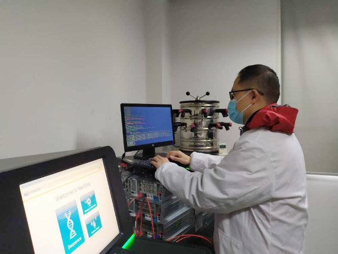 達(dá)摩院算法專家顧斐博士在疾控中心基因檢測(cè)分析現(xiàn)場(chǎng)
