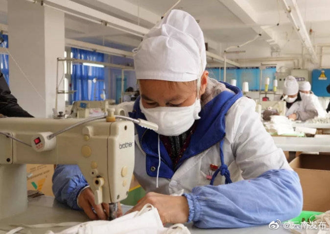 從1月26日起,云錫控股公司迅速安排下屬的個舊云錫勞動防護(hù)用品有限責(zé)任公司,號召就近居住的員工放棄休息投入口罩生產(chǎn)。