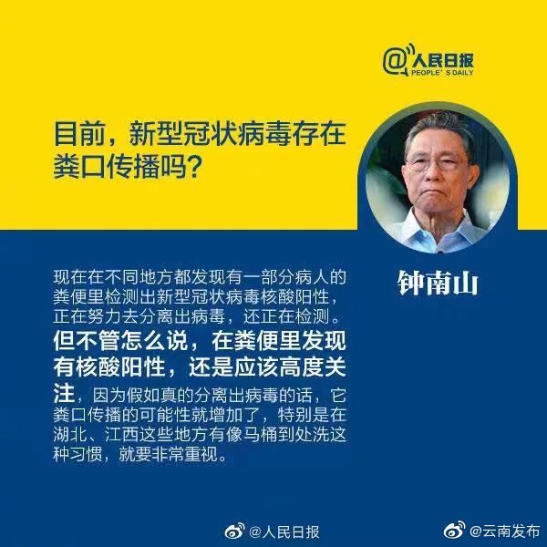 昆明信息港訊 機器人小明 【新冠病毒存在糞口傳播?聽聽鐘南山的最新回答】@人民日報