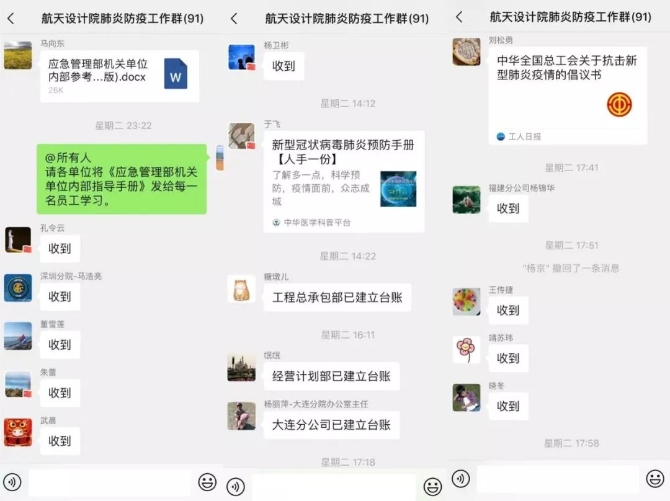 為了及時(shí)跟進(jìn)疫情防控情況,航天建設(shè)所屬航天設(shè)計(jì)院黨員干部主動(dòng)要求,輪流電話值班,群眾積極主動(dòng)參與,哪怕凌晨響起的消息提示音,也總有人在第一時(shí)間傳遞各方消息。雖不在工作崗位,卻自發(fā)形成了“007”工作制。