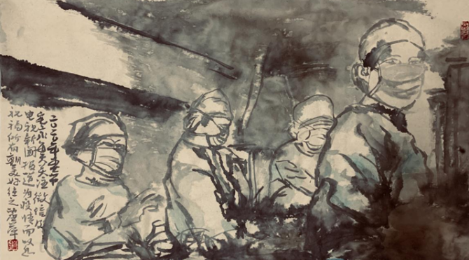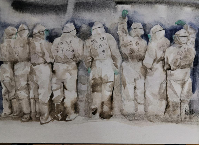 羅江《最美逆行者》紙本水墨