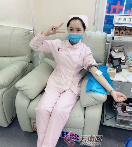 血液中心采血護(hù)士曹馨月獻(xiàn)血400毫升