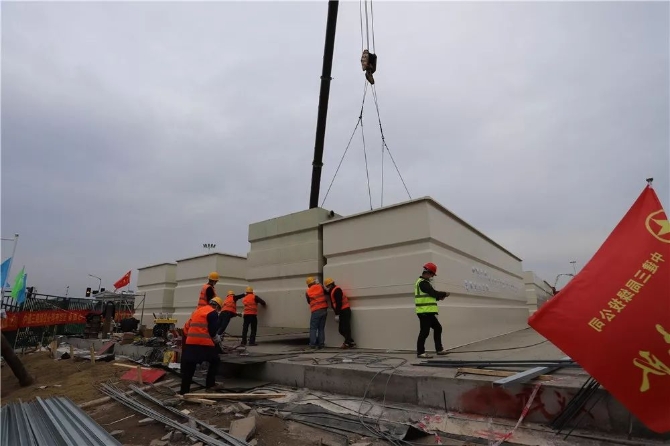 武漢火神山醫(yī)院污水處理廠已建成,武漢市生態(tài)環(huán)境局人員在火神山醫(yī)院現(xiàn)場協(xié)調(diào)督導在線監(jiān)測站房及設備建設事宜。