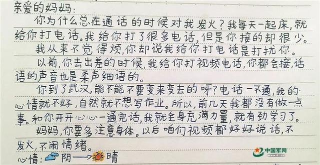 媽媽,你要多注意身體。以后咱們視頻都好好說話,不發(fā)火,不鬧情緒。心情從陰天變大晴天。