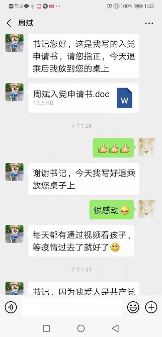 “我是一名鐵路客運(yùn)工作者,我將在這個(gè)崗位上努力奮斗,積極向黨組織靠攏,希望黨組織能夠接納我。我承諾將帶領(lǐng)班組全力以赴抗擊疫情……”2月1日,一份入黨申請(qǐng)書(shū)出現(xiàn)在動(dòng)車一隊(duì)黨總支書(shū)記的桌子上。