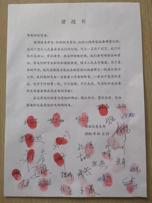 中國兵器工業(yè)集團(tuán)一機(jī)集團(tuán)內(nèi)蒙古一機(jī)醫(yī)院藥放化黨支部黨員請戰(zhàn)書