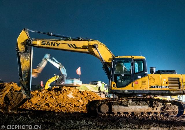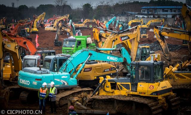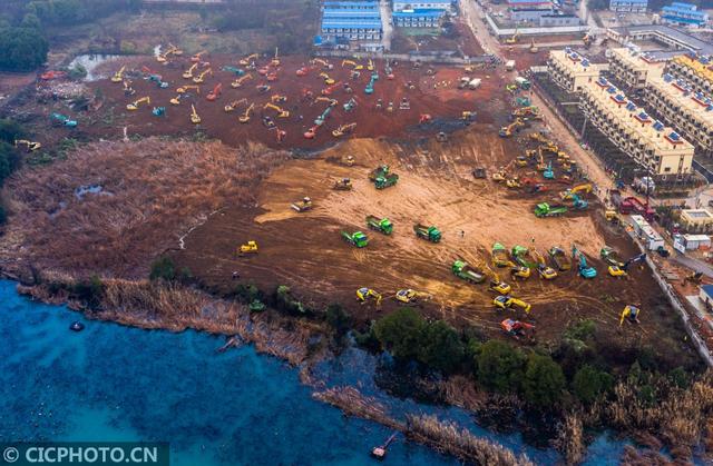 2020年1月26日,大年初二,火神山醫(yī)院基礎(chǔ)工程全面展開,材料陸續(xù)進(jìn)場。CICPHOTO/黃蕾/攝