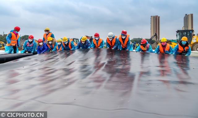 2020年1月26日,大年初二,火神山醫(yī)院HDPE膜鋪設(shè)。CICPHOTO 黃蕾/攝